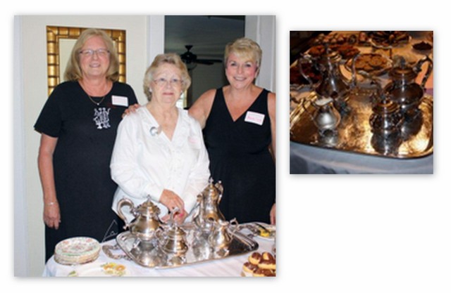 2012-08-17 - Columbia, KY - Photo by Jane Grant. The Columbia Woman's Club Membership Tea was held Wednesday, August 15, 2012 at the home of the club's treasurer, Sheila Lynch. From left, above are club members Pamela Geisselhardt, Wanda Hill and Sheila Lynch who are standing behind the tea set that has been with the club for many years. The tea set is now being cared for and is owned by member Wanda Hill. - Jane Grant