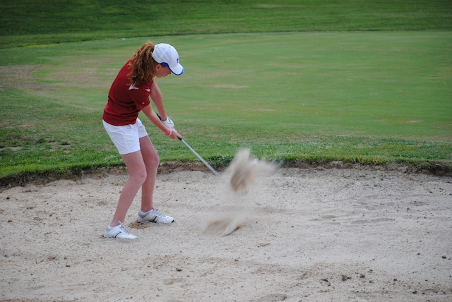 2012-08-14 - Green County Golf Club, 158 Golf Course Road, Greensburg, KY - Photo by Kim Goodin. Hailey Taylor had a sand save by knocking this one within three feet and made the putt on hole No. 2 at Green Co. on Monday, August 13, 2012. -Coach Kim Goodin