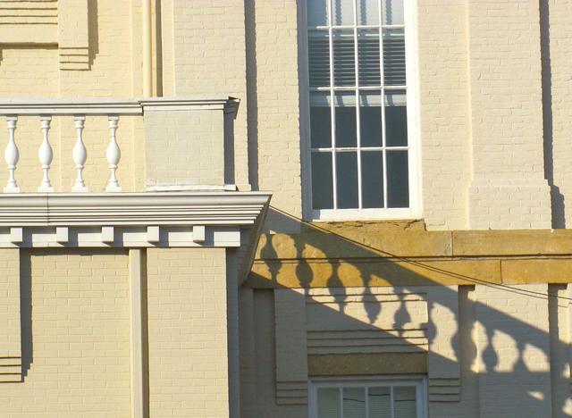 2012-08-10 - 500 Public Square - Photo by Ed Waggener. At first glance the evening sun casts a shadow which almost looks like steps to the roof top on the westside of the Historic Adair County Courthouse. But a closer look could mean only a ramp -the shadow has no stairstep risers. Still, a maybe a bit charming sunny day incident. -EW