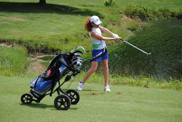 2012-08-07 - Campbellsville, KY - Photo by Kimberly Goodin. A rising star on Coach Kim Goodin's young Adair County High School Girls Golf team is Hailey Taylor, daughter of Barney and Nancy Taylor, and a seventh grader at Adair County Middle School. Hailey shot a 55 in Adair County's victory at Kentucky Hills on Monday. The photo was taken in action at Campbellsville Country Club, Saturday.
