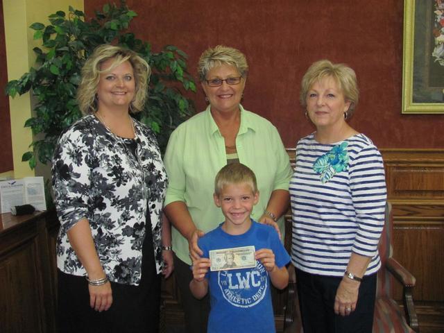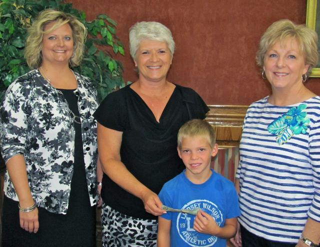 2012-07-29 - F&FNB, 124 Public Square, Columbia, KY - Photo by Ed Waggener. Sharon Keltner, center with envelope presented a monetary donation on behalf of the Millard Keltner family and Tarters Chapel United Methodist Church to the Kids Need Kicks drive, which is finishing up this year's drive on Monday, July 30, 2012. Accepting for Kids Need Kicks are, left Mindy Smith and son Braxton, and right Cricket McCloud, the founder or KNK. Although the committee is assured of meeting the needs of the applicants for the Kids Need Kicks program, there is still an urgent need for funds for emergencies during the year. Kids Need Kicks annual goal is 300 pairs of new shoes and many more pairs of socks. $30 buys a new pair of shoes, and $10 buys 10 pairs of socks. The rewards, smiles on the faces of the kids, and readiness for school, makes it all worth the effort, Cricket McCloud says. If you would like to contribute to the ongoing fund Please make checks payable to "Family Resource Center" and mail to PO Box 242, Columbia, KY 42728. If you have any questions, please contact Cricket McCloud at (270) 385-9633 or Mindy Smith at (270) 250-6060.