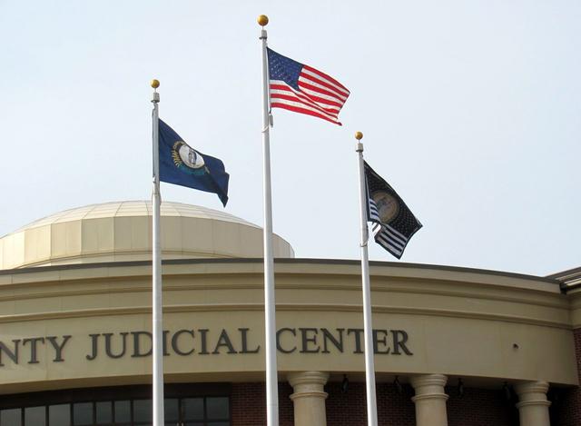 2012-07-27 - 201 Campbellsville Street, Columbia, KY - Photo by Ed Waggener. Three flags: In the center and highest, the United States Flag. On the left, the Commonwealth of Kentucky flag, and on the right, the Kentucky judicial flag. It's this Adair County courthouse - not the county government offices at the Adair Annex - which will be closed for budget saving furloughs on Monday, August 6; Tuesday, September 4; and Monday, October 15, 2012.