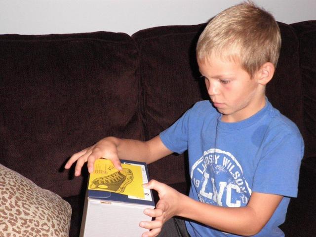 2012-07-27 - Columbia, KY - Photo by Mindy Smith. Braxton Smith helped with sorting the shoes for the Kids Need Kicks campaign, one of Adair County's most enthusiastically supported fund drives, founded by Braxton's grandmother, Cricket McCloud.