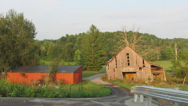 2012-07-22 - KY 61 S., Columbia, KY - Photo by Linda Waggener. One place a pretty scene was made more beautiful - with a view from behind rather than in front, is at the old Pleas Edwards place near Santa Fee Baptist Church, especially in the afternoon sun, as above. The photo is taken from the stretch of highway opened this past week toward old KY 61, now in transition from Burkesville Road to Wheeler hill Road. The Edwards son, Houston "Hootie" Edwards became a Jamestown Hill Gang member after moving to Heskamp Street from this location - sometime in the late 40's-early 50's. The private passageway in the center of the photo is, as yet, unnamed.