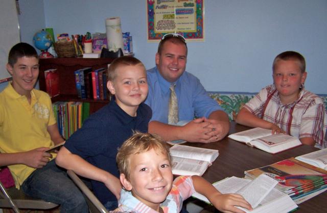 2012-07-19 - 2250 Cane Valley Road, Cane Valley, KY - Photo by Fran Neat. These young people are happy to be in Sunday School class under the instruction of Kyle and Chandler Cundiff. Jaden Gowen, Dustin McGuffin, Ronnie McGuffin, Kyle Cundiff, teacher, and Nick Anderson.