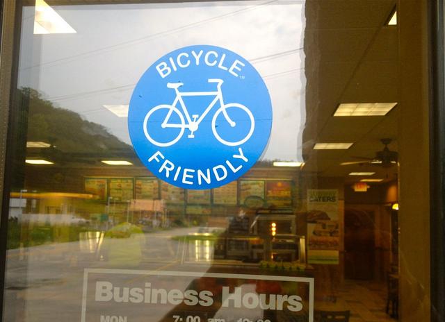2012-07-18 - Slade, KY - Photo by Justin Keene. This photo is from Justin Keene of Hyden, KY. Justin is owner of 15 Subway restaurants in the Southeastern Kentucky area. He reached out to us and asked if he could place our Bicycle Friendly sticker on every door of his 15 hometown Subway restaurants. This photo is from the Natural Bridge store. -DAVID GRIGSBY