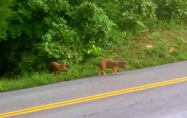 Two piggies loose on Bull Run Road