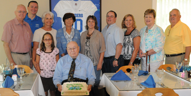 2012-07-18 - 275 Country Club Road, Columbia, KY - Photo by Duane Bonifer. LWC. The Lindsey Wilson College National Alumni Board of Directors celebrated and met last Saturday, July 14, 2012, at William T's restaurant. The group met for their summer meeting, but not before celebrating Dr. Julius Stepheson's 92nd birthday. Stephenson of Burkesville, KY, who graduated from the liberal arts college in 1947, is one of the longest-serving members of the LWC National Alumni Association Board. From left: Gary Lane '61; Randy Burns '93; Carrie L. Farris '68; Dahlia Kressler, 10, of Loveland, Ohio, Farris' granddaughter; Bonnie Greenawalt '53; Jan Woody '77; Gary Franklin '94; Denise Fudge '82; Prudence Hutchison Westholm '69; and Ben Burr '64. - DUANE BONIFER