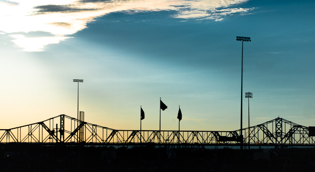 2012-07-16 - Louisville, KY - Photo by Pen. The view Sunday evening from Louisville Slugger Field, looking out across Waterfront Park to the Clark Memorial Bridge.