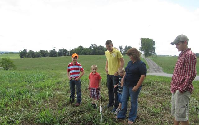 2012-07-17 - Cane Valley, KY - Photo by Fran Neat. Mary McGuffin and the children from left, Dustin, Andrew, Ronnie, Alex, Mary, and Terry, are walking over the site where their new house will be built. The site has been donated, and, organizers say, much of the labor and many materials have been given to the project, giving them confidence with continued generosity the project will make it by the August 1, deadline. Now just two weeks away.