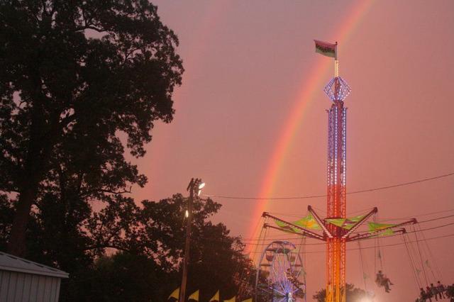 2012-07-14 - 413 Fairground Street, Columbia, KY - Photo by Shamarie Claiborne. It's been an incredible week at the fair. The weather cooled at the start of this week - and Tv star Ernie Brown, Jr., provided a huge surprise with the filming of a Tv episode with two crowd pleasing incidents on the Midway and center stage. On Thursday, nature provided this spectacular double rainbow. Fortunately, Shamarie Claiborne was on the scene - "Got these shots while I was helping at the Block Building Thursday night! Couldn't resist the shot had to stop serving food for a few moments to run outside and get my camera. In some of them you can see the double rainbow it was an awesome sight!," she writes. Shamarie and the Band Boosters are providing hometown cooking at the fair. Today is the biggest day of the fair, with events starting at 9amCT and continuing through the Cash Giveaway at the close of the event tonight. $10,000 will be won by some very luck individuals.