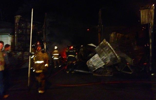 Building engulfed when firefighters arrive - The Adair County Fire Dept responded to a fire on Tuesday night, July 10, 2012, at 11:48pmCT to 257 Richards Lane, Columbia, to find a 45 x 45 shop building used for body shop engulfed in fire. - Donald Hare