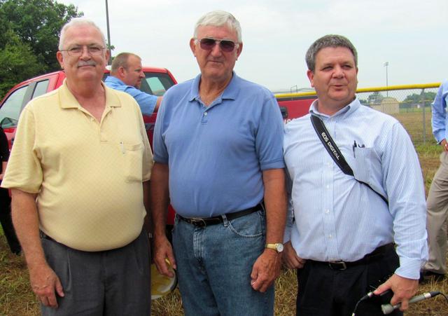 2012-07-10 - Adair County School District Campus - Photo by Ed Waggener. Former Superintendent Darrell Treece left with Adair County School Board Chairman Floyd Burton center with Larry Smith, news anchor for the WAVE, FM 92.7, the after the groundbreaking today.