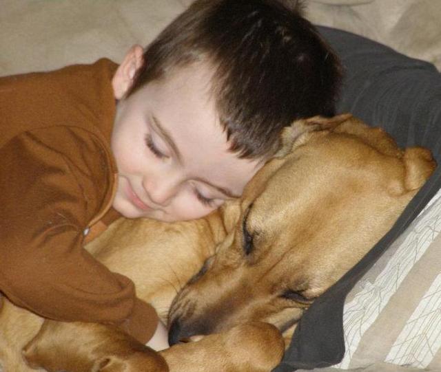 2012-07-09 - Adair Co., KY - Photo family photo. Donovan Baker is sleeping like a baby. So is his buddy, Copper, the Hound Dogger / a blood hound. Donovan adopted Hound Dogger at the animal shelter in Glasgow. Hound Dogger does what a blood hound is supposed to do. She "Hound Dogs." Donavan watches her on the trail and says, "Look, Daddy, she's hound dogging." Donavan has a cat name Gizzard, a somewhat rotund yellow tabby, who usually stands in higher stead. Gizz does not take his toys, as Copper is wont to do.