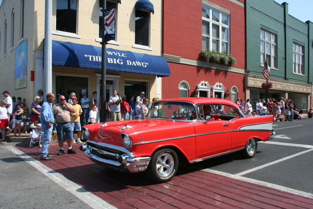 Larry Smith took this photo of an awesome 1957 Chevrolet on display during the Campbellsville, KY 4th of July Celebration. And he said he wanted to show of Mayor Tony Young's new pedestrian crosswalks, which offer not only a visual cue to drivers, but also have a built in road rumble adding sound and and slight change in road feel to alert motorists that they are in a walking zone. Smith says the improvements have made a dramatic improvement in public safety as well as giving those on foot the perception of being unthreatened, to many as important as the fact. -EW