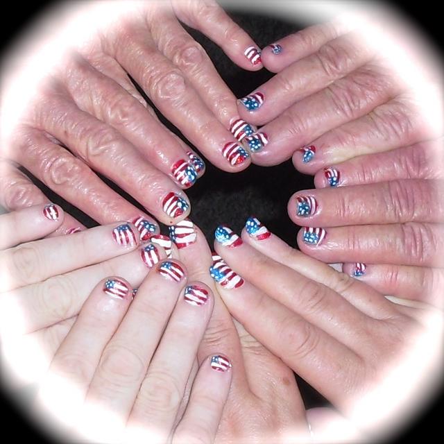 2012-07-04 - Columbia, KY - Photo by Sherry Turner. Women at the Ole Homeplace Adult Day Health Care were given special nail designs this week to help celebrate the most patriotic event of the year. - Sherry Turner