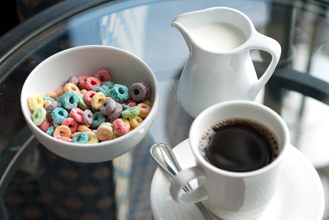 2012-06-27 - Cincinnati, OH - Photo by Pen. 3.95 is a ludicrous amount to pay for a tiny box of cereal, except maybe when you're 10 and it's served in fine china by room service to the 16th floor of your free hotel room in the big city. Served with a cup of extra strong coffee, it becomes quite a classy breakfast before a day at the zoo.