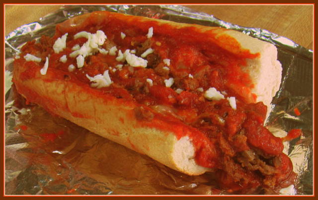 (Ad) The Philly Cheese Pizza Sandwich at Flatwoods Diner