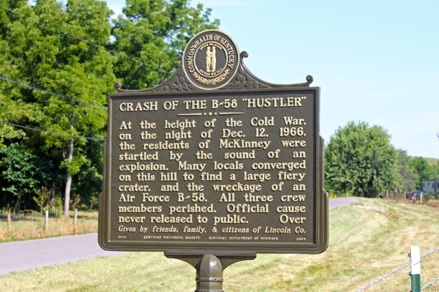 2012-06-24 - Short Pike, McKinney, Lincoln County, KY - Photo by Johnnie Tarter, Columbia, KY. A major incident on American soil during the long Cold War, won't fade into history, but memories of the tragedy are now officially commemorated thanks to the work of Adair Countians Chris Bennett and Alan Reed. Bennett was inspired by the story of the event remembered by Alan Reed and then spearheaded a drive to fund, process and erect this Kentucky Historical Marker on Short Pike, McKinney, KY.