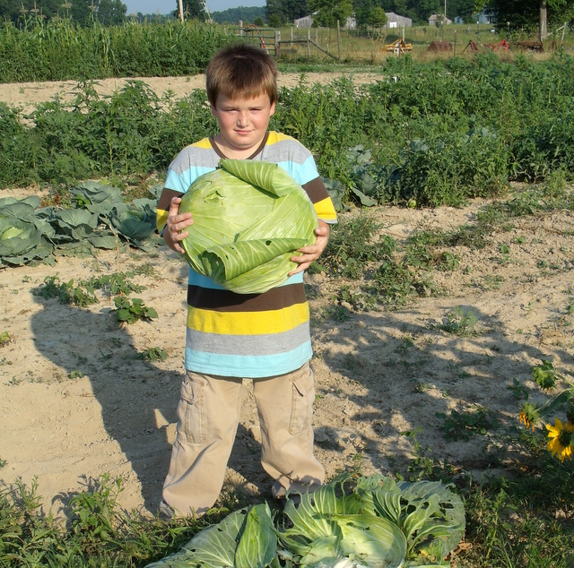 2012-06-23 - Columbia, KY - Photo by Gola Burton. Zachary Streeval with his cabbage that weighed 11.5 pounds, taken at the home of his Nana and Papa Jeff and Dorinda Streeval, on Thursday, June 21, 2012, in the Christine Community of Adair County, KY. - Gola Burton