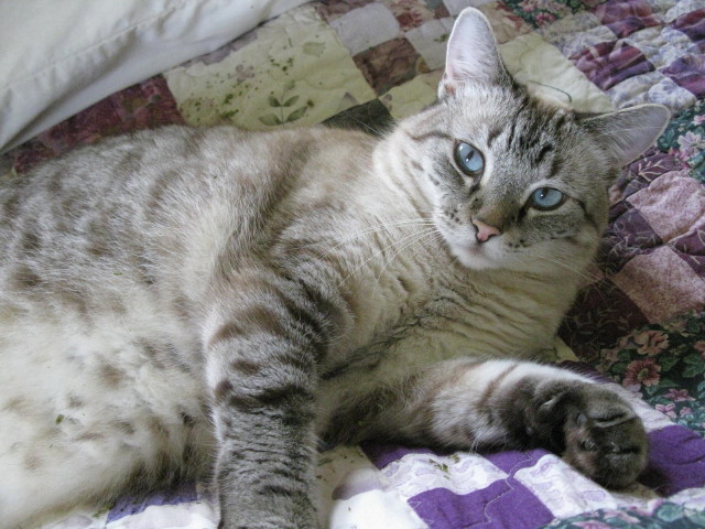 2012-06-21 - Old Gradyville Road, Columbia, KY - Photo by Sharon Whitehurst. Her launch in life in Wyoming began as a pitiful, deserted little kitten. But after a humane but nonetheless traumatic capture - for Teasel and Sharon Whitehurst - she fell into the care of her loving family. After being fed and getting a calming pencil rub, her life changed to wonderful. Now she, with the family who serves her, are living the good life on the banks of Big Creek. "I have always thought that some good angel who has the welfare of cats as a special charge must have brought Teasel to me," Sharon Whitehurst writes in the accompanying diary entry.