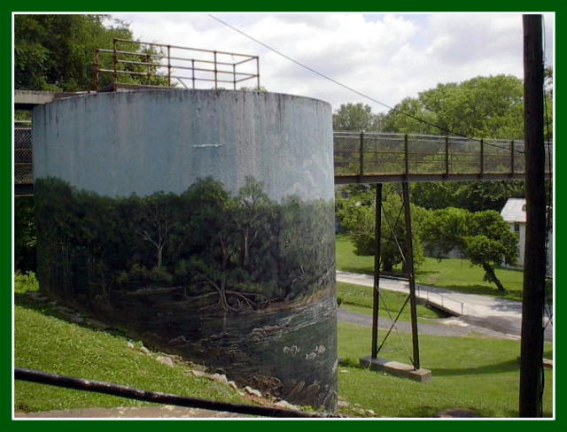 2012-06-18 - Greensburg, Ky - Photo by Joe & Peggy Jones. The Goose Creek Footbridge and old water tank in Greensburg. A mural on the water tank as well as on the back of the old water plant building is the work of artist, Trina Corbin. - Diane Hall