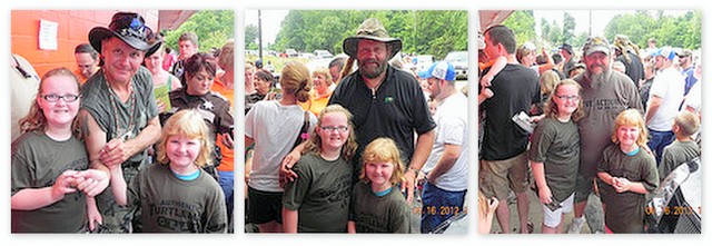 2012-06-17 - Photo by Suzanne Streeval. Leslie and Sarah Streeval meet The Turtle Man: They finally got to meet "Turtle Man" left photo and all his buddies Saturday morning, June 16, 2012. After waiting a while in the rain they said it was worth it. In the center they are with Squirrel, and on the right, with Neal. -Suzanne Streeval Seen in the ColumbiaMagazine group on Flickr.