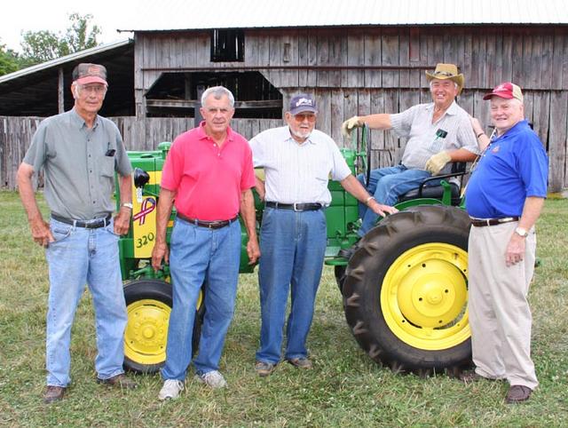 2012-06-17 - Homeplace on Green River - Photo by George Kolbenschlag. Tractor Aficionados: Some of the region's finest tractor aficionados attended the Russell Creek/Homeplace tractor show. Shown here is the pick of the crop. From left, Escol Jessee, Rudy Higginbotham, Randy Nelson and former Adair County Extension agent Wayne Livesey and Charles Barnes. - George Kolbenschlag