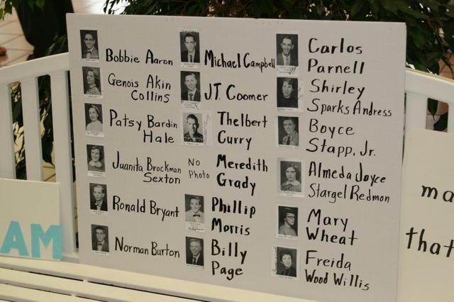 2011-05-29 - Cranmer Dining Center, 430 Helen Flatt DR, Columbia, KY - Photo by Shamarie Claiborne. The Adair County Class of 1956 remembered 18 of its members with this memorial board with the photos of all but one deceased classmate. The exhibit was in the lobby of the Cranmer Dining Center, Lindsey Wilson College, where the reunion was held Saturday, May 28, 2011.