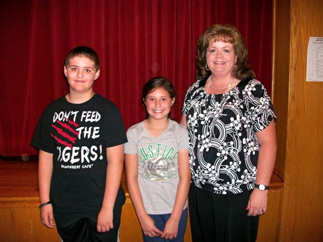 Students in Mrs. Pike's 4th Grade classes participated in a Spelling Bee. Pictured is Trevor Smith overall winner, and Rachel Parrish, 2nd semester winner, and Mrs. Jeana Pike Language Arts teacher.