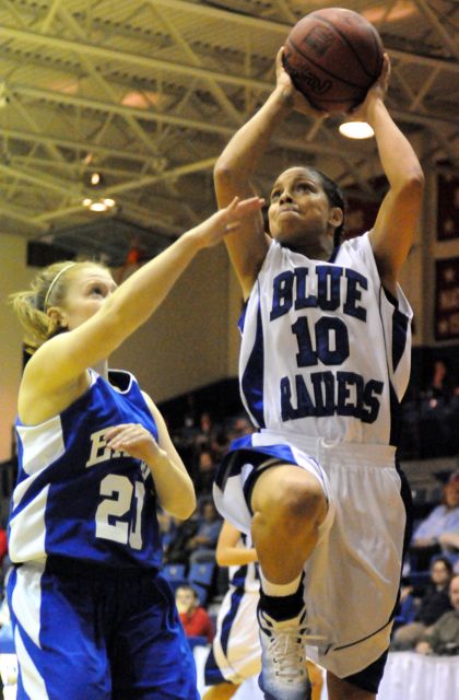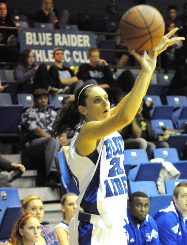 Dunnville, KY Blue Raider Michelle Copley hits 3-pointer