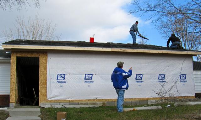 2010-11-17 - Photo by Ed Waggener. 801 Burkesville ST, Columbia, KYThe Mark Hatcher Construction Co., Columbia, KY is completing a 1,000 s.f. addition for the fast growing Community Medical Services durable medical goods company. Mark Hatcher, the owner, is on the ground while cloud walkers Bradley Kelsey and Hatcher's son Sean Hatcher are roofing. Hatcher expects the entire job to be complete in 3 weeks, by early next week. The building will be used for additional storage, he said. Community Mecical Services is owned by Kay Bowman and Stacey Wilson. The company was recently honored for its entrepreneurship and is one of the really bright spots in the Columbia economy.