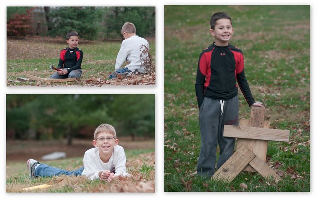 Graham and Evan have created some world class backyard art in Shelby Co., KY. In the upper left corner, the boys with tools and medium. Lower left, Graham eyes installation. And, at right Evan with the nearly finished "robot" sculpture, which awaits only paint and lasers. -Granddad