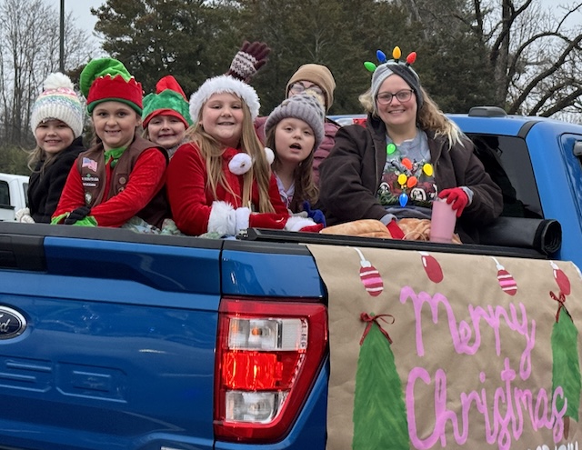 2025-12-09 - Downtown Columbia, KY - Photo by Linda Waggener, ColumbiaMagazine.com. One reason the prize went to Free Union Separate Baptist Church's float in Saturday's Christmas in Columbia parade was the sweet live animals on the back of the manger.