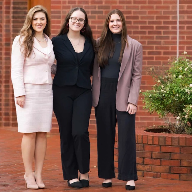 2025-12-09 - Columbia, KY - Photo courtesy Lindsey Wilson University. The Lindsey Wilson University team of, from left, Taylor Harvey of Columbia, Allee Harris of Harrodsburg, Kentucky, and Grace Adams of Bethlehem, Kentucky, took first place in this fall's Marketing Research Competition's undergraduate division.