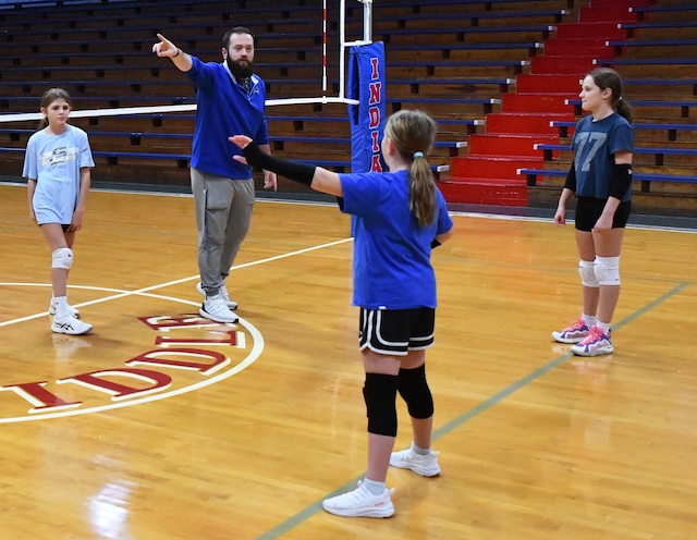 2026-01-16 - Columbia, KY - Photo courtesy Lindsey Wilson University. Lindsey Wilson University volleyball coach Josh Kreiner gives instructions to his team during a recent Adair County Middle School volleyball practice at Adair County Middle School.