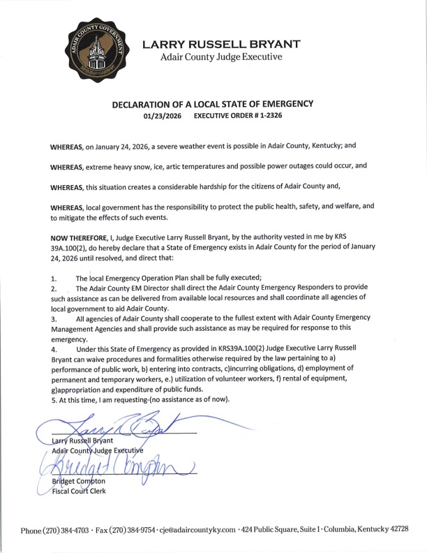 Provided by the Adair Co Fiscal Court and the Adair Co. Emergency Mgt. Agency