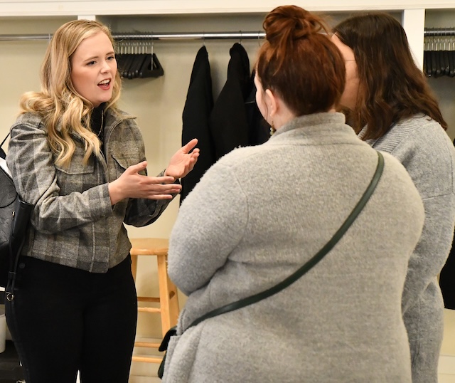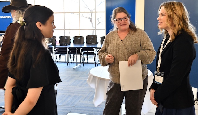 Speaking to Lauer are Lindsey Wilson Director of Choral Activities Jennifer Bersaglia, center, and Begley Scholar Anna Kate Alexander '29 of Glasgow, who is a Begley Scholar and a member of the Lindsey Wilson Singers.