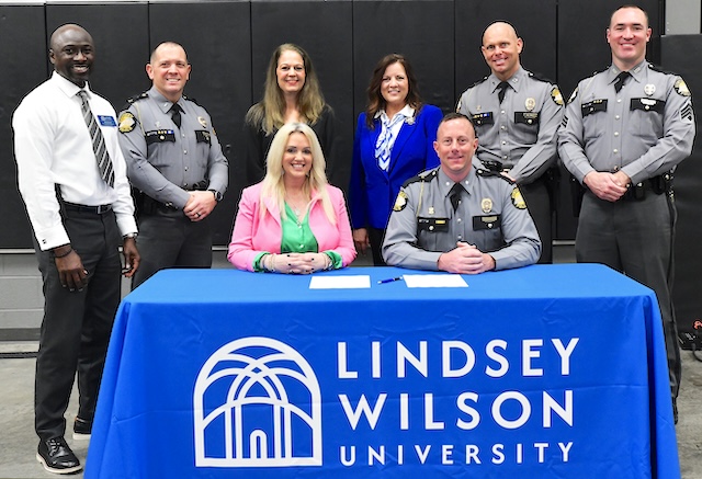 2026-03-12 - Frankfort, KY - Photo courtesy Lindsey Wilson University. Representatives from Kentucky State Police and Lindsey Wilson University gathered on Wednesday, March 11, 2026, at the Kentucky State Police Academy in Frankfort to announce the Lindsey Wilson Kentucky State Police Scholarship.