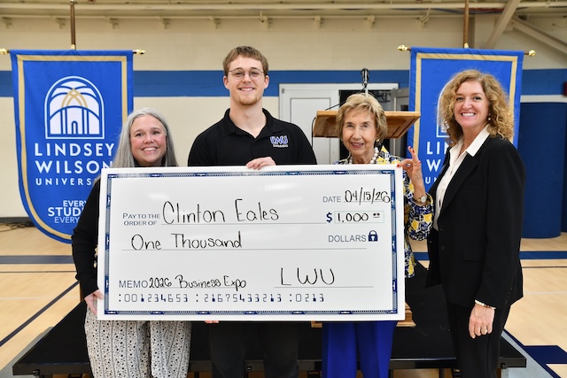 2026-04-17 - Columbia, KY - Photo courtesy Lindsey Wilson University. Three original business concepts were awarded top prizes by a panel of judges made up of regional business professionals on Wednesday, April 15, 2026, at the Lindsey Wilson University Entrepreneurship Expo. A total of 16 concepts, presented by 32 Lindsey Wilson students, competed for cash prizes totaling $500, $800 and $1,000.