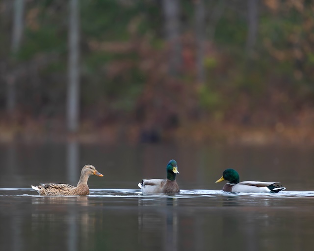 A trio of mallards enjoy calm waters at the end of an otherwise blustery fall day in Long Run Park.