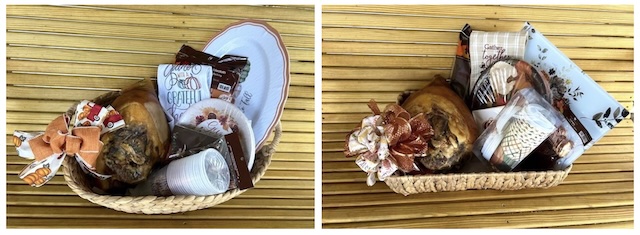 Nathan & Avi Young's Country Ham Basket, above left, is is decorated for fall, with pinecones, candles and crafts, and will make a beautiful gift basket.