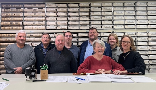 2025-12-22 - Columbia, KY - Photo from Cayce Davenport. Todd Davenport, (D), Magistrate of District 2, filed for the office of Adair County Judge Executive today. Pictured from left are: Doug Beard, Bro. William Davenport, Joseph Flowers, Lash Davenport, Todd Davenport, Candice Flowers, Emmett Davenport, and Cayce Davenport.