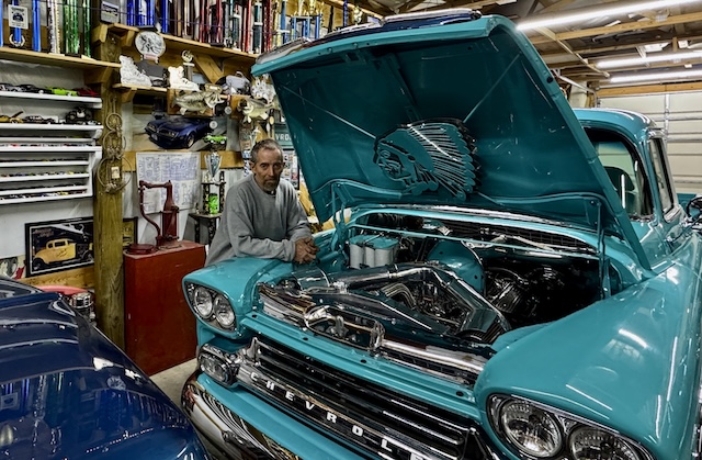2025-12-22 - Adair County, KY - Photo by Linda Waggener, ColumbiaMagazine.com. This perfectly restored and customized turquoise 1959 Chevrolet Apache truck will be featured on the cover of the 2026 Mike Lennig calendar. Gleaming and immaculate, it represents the level of craftsmanship that has earned JD recognition well beyond his Glens Fork Auto business.