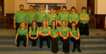 The Creative Ministry Team, Columbia Baptist Church will perform May 4 2008, at 7:00pmCT at the CBC. Front row, from left-Laura Feese, Lindsey Koller, Emily Klingberg, Ashley Koller, Erin Burris, and Laura Marcum. Back row, Daniel Marcum, Cody VanVlymen, Patrick Reagin, Noah Richard, Connor Wooten, Jason Keltner, and Sean Keltner.