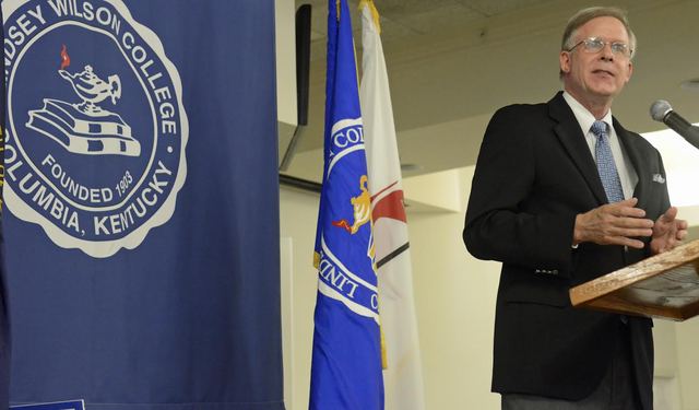 Lindsey Wilson College Dean of the Chapel the Rev. Terry Swan delivers the keynote address Friday, May 2, 2014, at the Senior Banquet at Roberta D. Cranmer Dining & Conference Center. - DUANE BONIFER