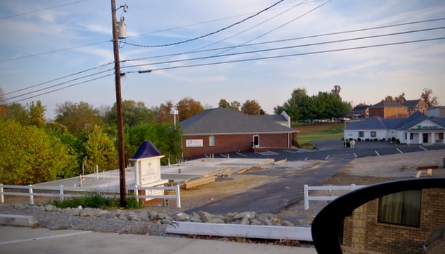 The Columbia Planning & Zoning Commission approved a zoning change for the lot at the left to High Density Residential from Highway Oriented Commercial, to accommodate the construction of an eight unit, 2 bedroom, 1 bath apartment building. Columbia businessman Jonathan Begley, who will own the structure, said that a second identical building is planned for the future. The photo, taken 3 Nov 2016, looks into and across Mike Stephens' Office Park. In the high left can be seen much of the main campus of United Citizens Bank, on Jamestown & Heskamp Street. - Ed Waggener