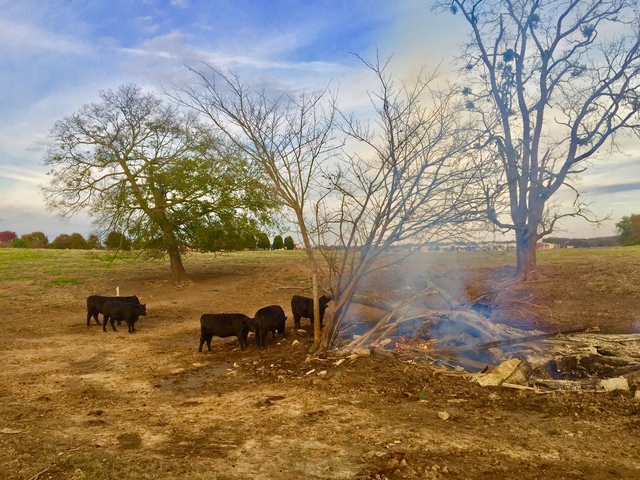 Call it just a coincidence if you will - but you have to admit it is a bone chilling one if you believe animals have a special sense of supernatural phenomenon. As smoke rises as from a funeral pyre over the sinkhole the late Gertrude Browning used to scare the begeesus out of Vicky Browning when just a wee mischievous lass by telling her she might get tossed in that sinkhole with Bud Mullins, the ogre if her deportment did not improve, the Girls at Miss Victoria's Pampered Angus Ranch are mesmerized... on Halloween of all times! We'll probably know in the morning whether Bud Mullins resurrected himself or not.