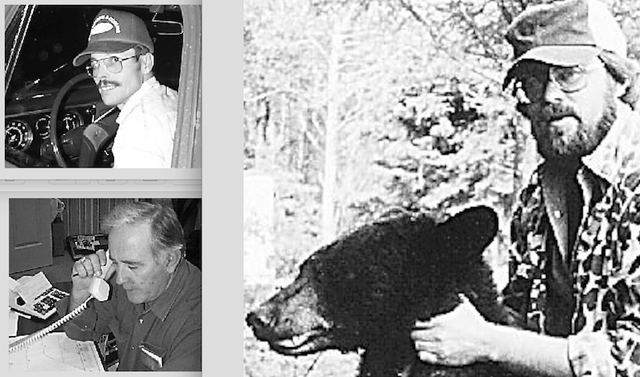 Gary Coomer, top left, "the Dean of the Bear Board, lives on Bennett Ridge, smack dab in the middle of Likely Black Bear Country. To the north lies the Dean Woods, where there have been Bear Sightings. To the East rises Meatskin Road, then Harvey and Sparks and Independent and Greenbrier Ridges; next, Dirigo, Hwy 704, rich in bear lore; then northern Cumberland County-and beyond, more Cumberland County. Thence to Clinton, through heavily forested Wayne County, and thence, eastward to McCreary County, the most westward confirmed black bear county in Kentucky.