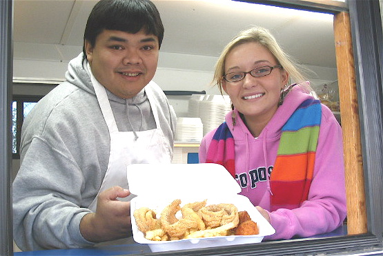 MENU/AD: Hungry? Try Flatwoods Parrishburger or Catfish+ Cod-on-rye Click on names below orclick on Catfish Plus ad for great menu. We really like their cod fish on rye sandwich, with pickle, onion, and tarter sauce or try Flatwoods Grocery & Deli ad for another great place to eat. We tried the big Parrishburger topped the old fashioned way with thick, fresh cut lettuce, onion, tomato, bacon, and cheese, on toasted bun. Same sandwich, with tenderloin, is great, too. Flatwoods Grocery & Deli 2006-03-17 11:01:48 | Comments | Printable version | See topic Food